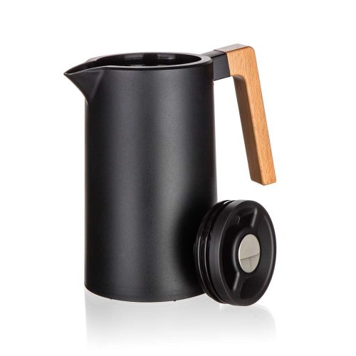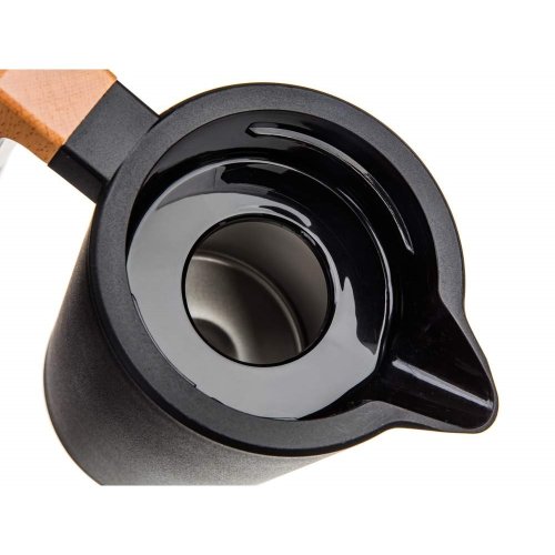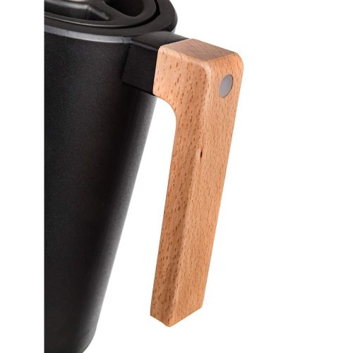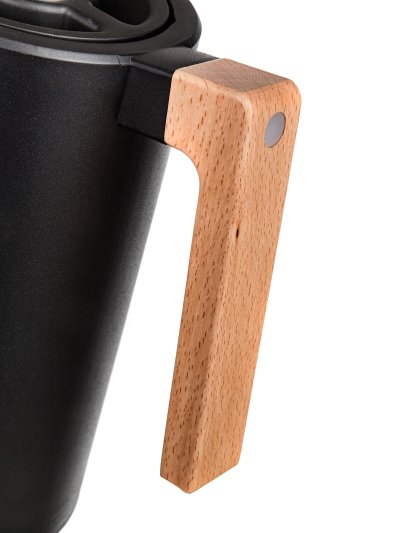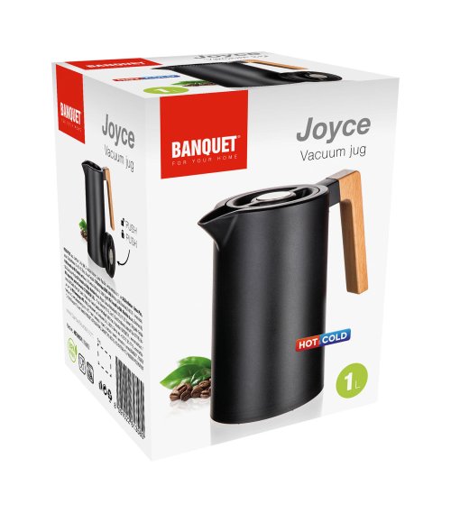 Termokanvica JOYCE s objemom 1 l, má vákuovo izolované telo. Vnútorná časť je vyrobená z nerezu 304, vonkajšia časť z nerezu 201 a plášť je z plastu (PP). Termokanvica je vhodná pre teplé aj studené nápoje. Vo viečku termokanvice je guľatá poistka - termo-bezpečnostný uzáver, vďaka ktorému je možné nalievanie nápoja bez odskrutkovania viečka, stačí jednoducho zatlačiť poistku. Po opakovanom zatlačení poistky je kanvica uzavretá.