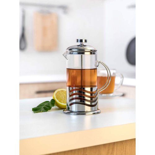 Sklenená kanvica na kávu WAVE 600 ml s nerezovými doplnkami je vybavená filtračným piestom z nerezovej ocele (nerez 18/8), ktorého stlačením je dosiahnuté dokonalé oddelenie kávovej usadeniny. Sklo kanvice je určené na horúce nápoje do 100 st. C.