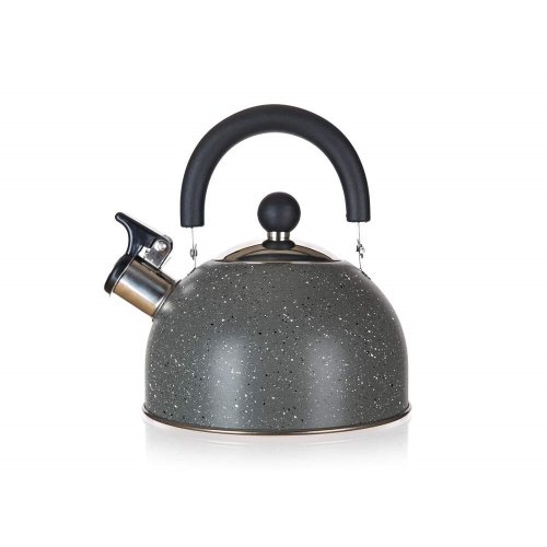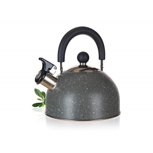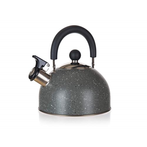 Kanvica nerezová GRANITE GREY 1,7 l na varenie vody, je neoddeliteľnou súčasťou každej domácnosti. Je vyrobená z nerezovej ocele 201, hrúbka 0,33 mm, dno 18/0, držadlo sklopné - plast nylon v čiernej farbe. Kanvica je opatrená zvukovou signalizáciou varu vody - zabudovaná píšťalka ohlási dosiahnutie bodu varu. Kanvicu je možné používať na všetky typy varných dosiek vrátane indukcie.