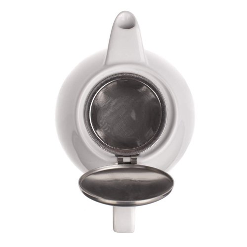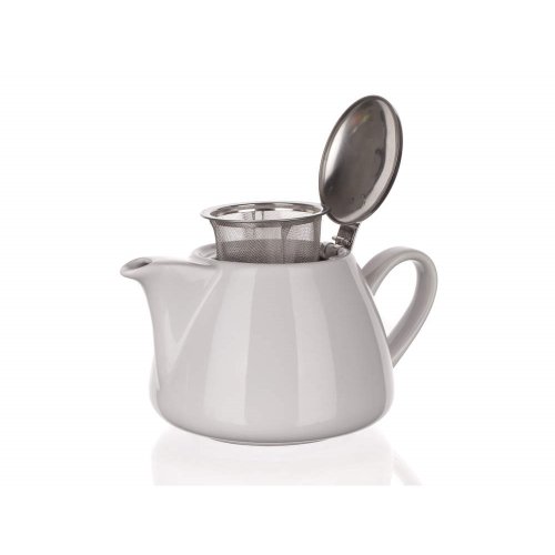 Konvička 1200 ml s viečkom a sitkom BONNET, biela glazúra, materiál - keramika, viečko aj sitko nerez. Nerezové sitko na lúhovanie čaju sa dá ľahko vybrať, kanvicu možno použiť aj na kávu.