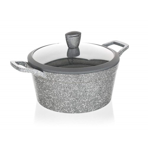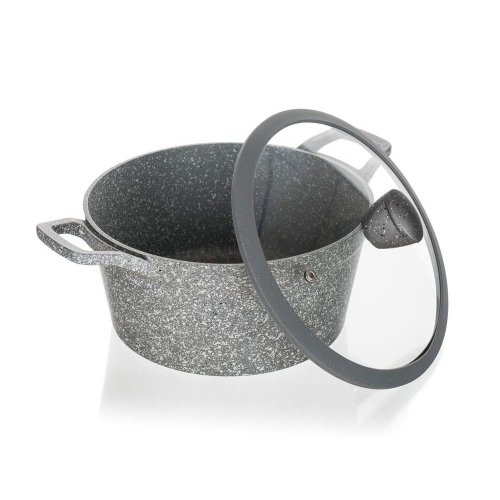 Hliníkový liaty kastról MARRONE s priemerom 28 cm so sklenenou pokrievkou, ktorá je opatrená knobom so silikónovým povrchom. Kastról má nepriľnavý povrch a je určený na každodenné varenie. Indukčné dno plne kryté žiaruvzdorným granitovým nástrekom. Kastról je vhodný na všetky typy varných dosiek vrátane indukcie.