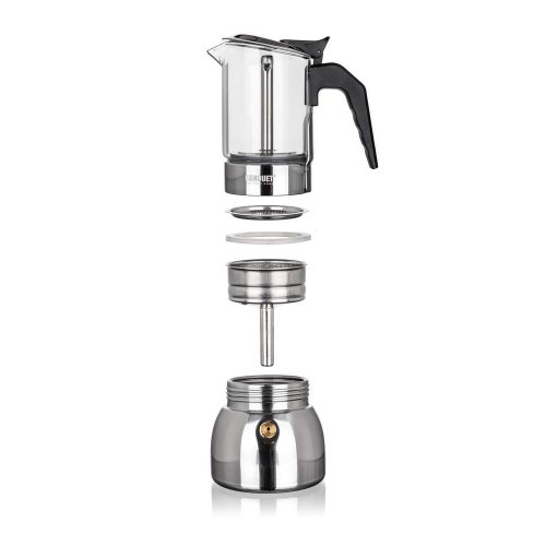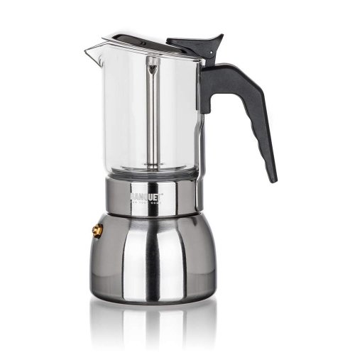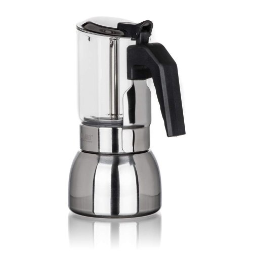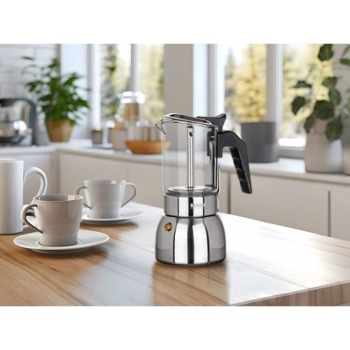 Kávovar LENA, 4 šálky je tradičný kávovar na domácu prípravu chutnej silnej kávy. Je vhodný na použitie na plynových, elektrických, sklokeramických a indukčných doskách. Kávovar je vybavený bezpečnostným ventilom. Využiteľný objem 200 ml.