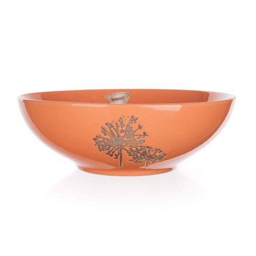 Misa 23 cm Alia Orange, kvalitná keramika s oranžovou glazúrou a hnedým dekorom, je možné používať do mikrovlnnej rúry a umývať v umývačke riadu.