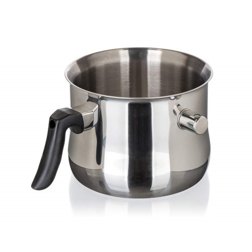 Nerezová mliekovka AKCENT 2,5 l je dvojstenná nádoba z kvalitnej nerezovej ocele s píšťalou. Nádobu otvorom pre píšťalu naplníte vodou. Píšťalka pri dosiahnutí bodu varu začne pískať. Mliekovka je tak ideálna na varenie pokrmov, ktoré sa ľahko pripaľujú ako mlieko, pudingy, krupicové a iné kaše, omáčky, čokolády. Píšťalka upozorní na vriacu sa vodu vo vnútri - mlieko a ďalšie pokrmy sa tak vlastne varí vo vodnom kúpeli a nemajú tendenciu sa tak rýchlo pripaľovať.