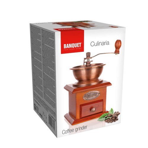 Ručný mlynček na kávu s keramickým mechanizmom, drevené telo s kovovou násypkou, vyberateľná drevená zásuvka na mletú kávu. Keramickú mleciu mechaniku je možné nastaviť na požadovanú hrubosť mletia.