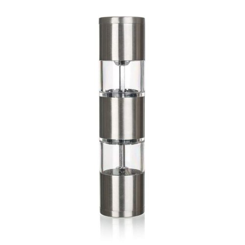 Mechanický mlynček na soľ a korenie CULINARIA Duo je dodávaný v nerezovom prevedení, zásobníky sú akrylové. Vnútornú časť mlynčeka tvorí keramická mlecia mechanika. Mlynček je veľmi praktický, soľ aj korenie máte neustále po ruke vďaka systému 2v1. Rozmery mlynčeka: výška 19 cm, priemer 4,5 cm. Na mlynčeku si môžete nastaviť hrubosť mletia podľa vlastnej potreby.