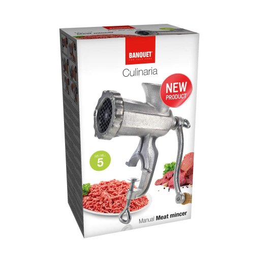 Liatinový mlynček na mäso CULINARIA v. 5, výška 23 cm, je nepostrádateľným pomocníkom vo vašej kuchyni. Mlynček je vyrobený z liatiny, rukoväť kľučky je vyrobená z dreva.