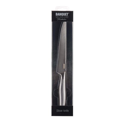 Nôž plátkovací METALLIC 26 cm je vyrobený z kvalitnej nerezovej ocele. Dĺžka noža 26 cm, dĺžka čepele 15 cm. Nôž je vhodný na každodenné použitie.
