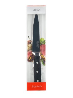 Nôž plátkovací ALIVIO. Nôž je vhodný na každodenné použitie. Oceľové nože patria medzi nenahraditeľných pomocníkov v každej kuchyni. Bez kvalitného noža si možno len ťažko predstaviť varenie.