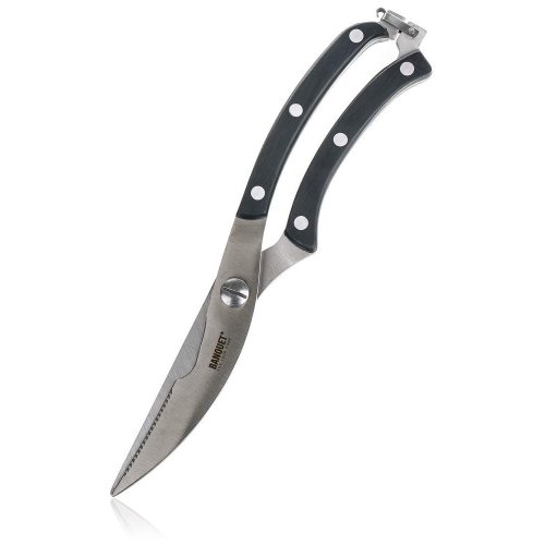 Nožnice na hydinu CULINARIA 25,5 cm sú vybavené zahnutým ostrím pre ľahkú manipuláciu a rýchle porciovanie hydiny. Nožnice sú vyrobené z ocele, hladké ergonomické rukoväte sú vyrobené z plastu v čiernej farbe a na konci sú opatrené poistkou.