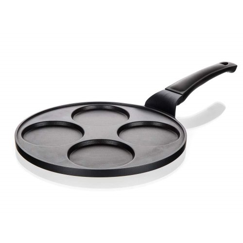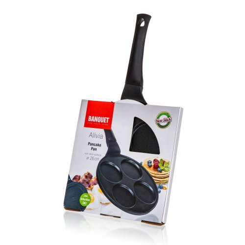 Hliníková liata panvica na lievance ALIVIA 26 cm má vnútorný nepriľnavý povrch a je vhodná na všetky typy sporákov vrátane indukcie. Lívanečník môžeme použiť na prípravu lievančekov, volských ôk a zemiakov s priemerom 10 cm.