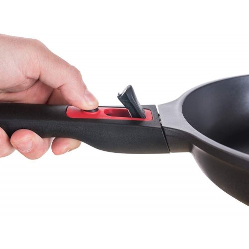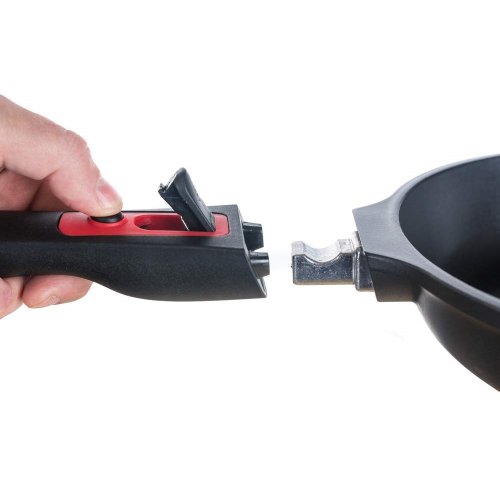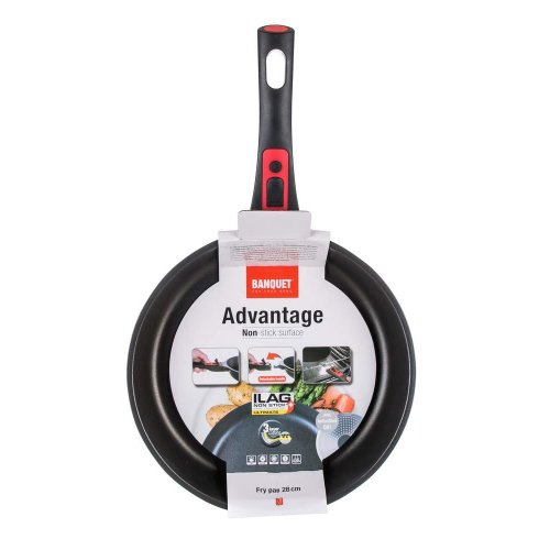 Liata hliníková panvica ADVANTAGE 28 x 5,5 cm s odnímateľnou rukoväťou má vnútorný 3-vrstvový značkový nepriľnavý povrch ILAG ULTIMATE Swiss Technology a vonkajší čierny 2-vrstvový žiaruvzdorný nástrek. Odnímateľná rukoväť panvice umožní použitie riadu v rúre a na úsporu miesta v kuchynskej linke. Panvica je vhodná na všetky typy varných dosiek.