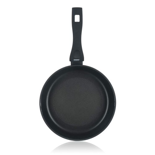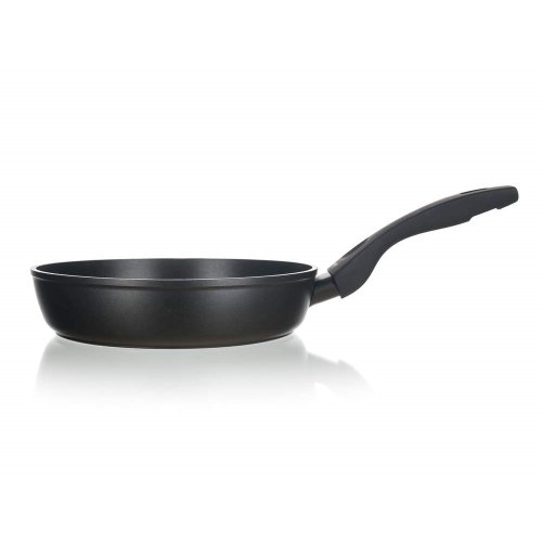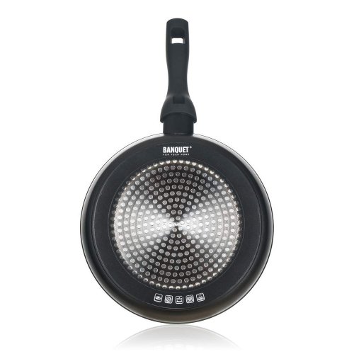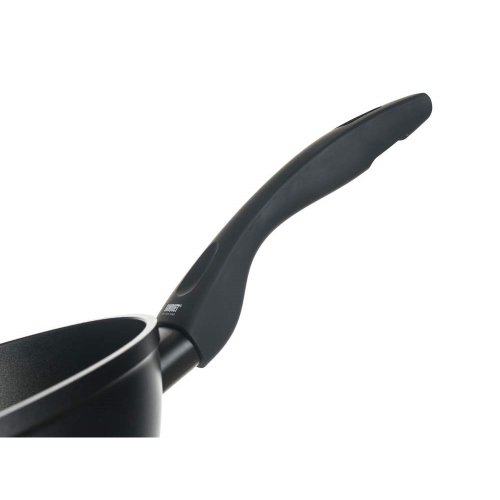 Hliníková kovaná panvica GRAZIA s rozmerom 24 x 5,5 cm so značkovým nepriľnavým 3-vrstvovým povrchom ILAG PREMIUM, s vonkajším 2-vrstvovým žiaruvzdorným nástrekom, farba čierny mat, zosilnená hr. steny 4,0 mm, indukčné dno s piktogramovou laserovou potlačou.