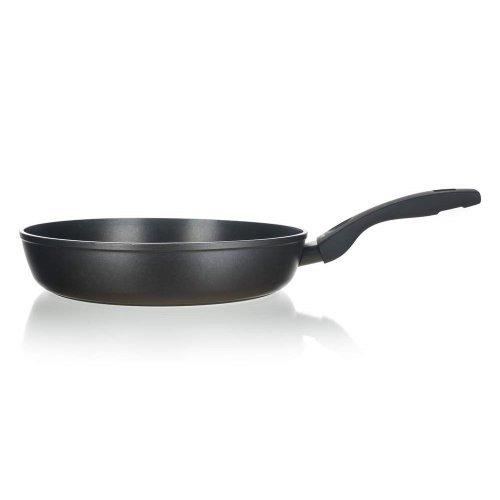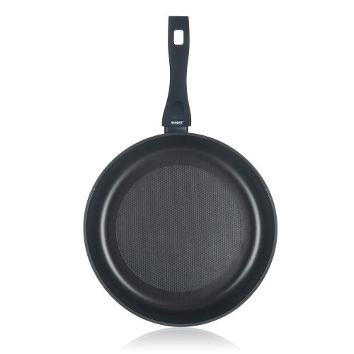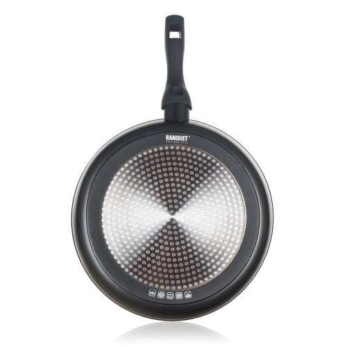 Hliníková kovaná panvica GRAZIA o rozmere 30 x 6,2 cm so značkovým nepriľnavým 3-vrstvovým povrchom ILAG PREMIUM, s vonkajším 2-vrstvovým žiaruvzdorným nástrekom, farba čierny mat, zosilnená hr. steny 4,0 mm, indukčné dno s piktogramovou laserovou potlačou.