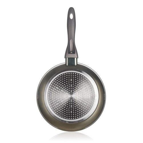 Hliníková liata kovaná panvica METALLIC PLATINUM s nepriľnavým povrchom o rozmere 24 x 4,8 cm, vonkajší karbón metalický nástrek, hrúbka steny 3 mm, plne indukčné dno, soft-touch rukoväť. Nepriľnavý povrch je veľmi tvrdý a odolný proti poškriabaniu. Panvica je odolná proti nárazu a deformácii tvaru. Vysoká tepelná vodivosť zaisťuje rýchle a ekonomické varenie - dlho drží teplotu.