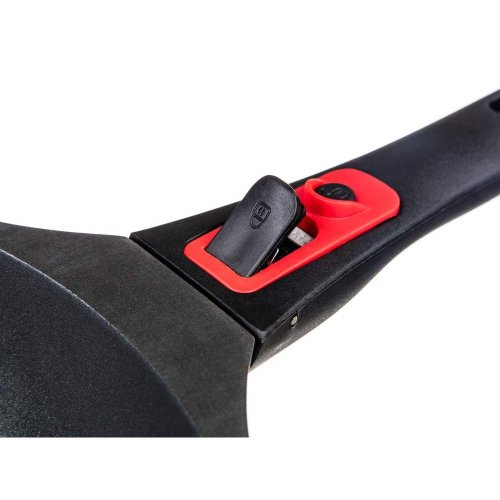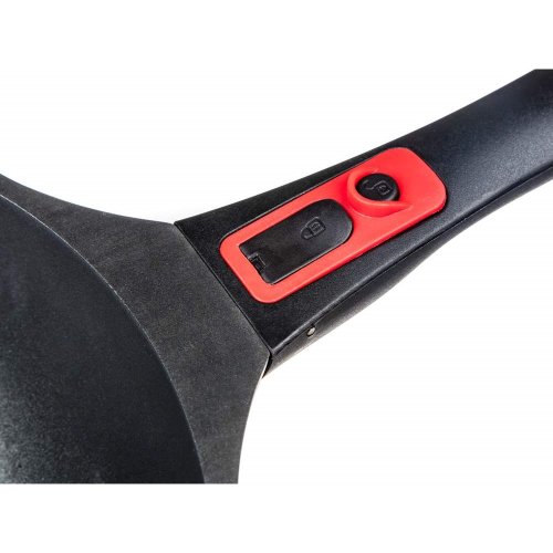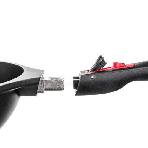 Liata hliníková WOK panvica so sklenenou pokrievkou s odnímateľnou rukoväťou ADVANTAGE je opatrená vnútorným 3vrstvovým nepriľnavým povrchom ILAG ULTIMATE SWISS Technology a vonkajším žiaruvzdorným 2vrstvovým nástrekom. Panvica má bakelitovú rukoväť so soft touch povrchovou úpravou, kryté indukčné dno pomocou žiaruvzdorného nástreku a odnímateľnú rukoväť, ktorá umožňuje použitie panvice do rúry (bez pokrievky) a zároveň pomáha ušetriť priestor vo vašej kuchyni. Pokrievka je opatrená silikónovým čiernym návlekom.