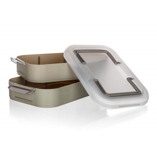 Skladujte svoje obľúbené pochúťky v plastovej dóze Culinaria od Banquetu s uchami, vďaka ktorým bude prenášanie desiat jednoduchšie ako kedykoľvek predtým. Je rozdelená na 2 poschodia, aby ste od seba mohli oddeliť jedlo a nezmiešalo sa vám. Jedno z poschodí je vybavené rozdeľovačom. Hodí sa na skladovanie rôznych druhov potravín.