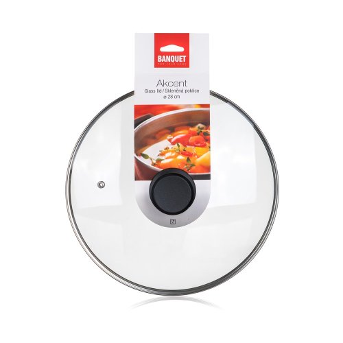Sklenená pokrievka AKCENT 28 cm je určená k panviciam a hrncom s priemerom 20 cm. Pokrievka je vyrobená z kvalitného tvrdeného skla a doplnená tepelne odolným bakelitovým úchytom. Sklo je osadené otvorom na odvod prebytočných pár. Pokrievka nie je vhodná do umývačky riadu.