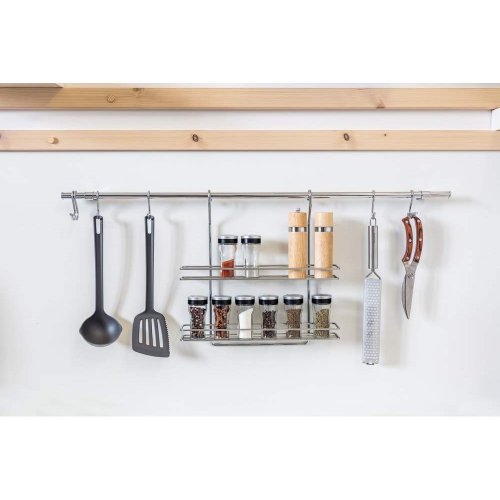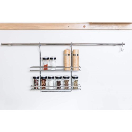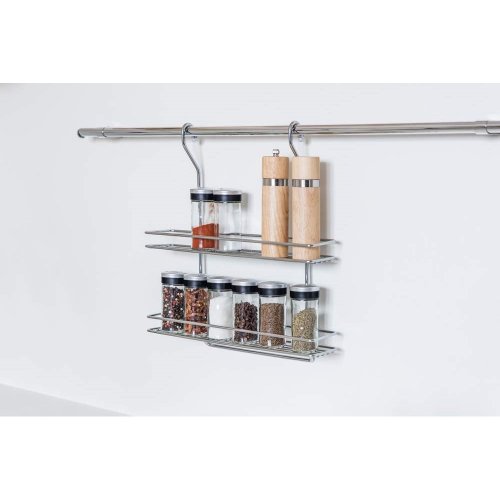 Závesná polička dvojposchodová VARIELLA o rozmere 37 x 37 x 9 cm, je vyrobená z pochrómovaného oceľového drôtu. Vhodná na koreničky AROMI a iné dózy s max. priemerom 5,5 cm. Výrobky zo závesného drôteného programu Vám umožnia mať všetko na očiach a po ruke.