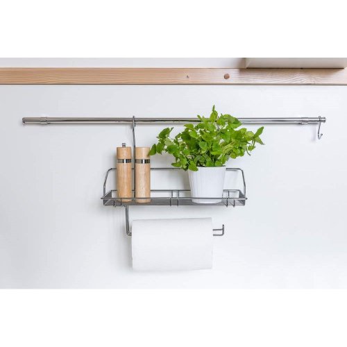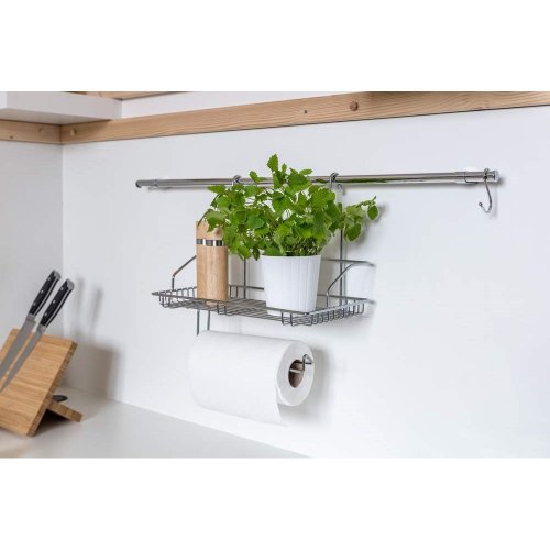 Závesná polička s držiakom na utierky VARIELLA o rozmere 40 x 34 x 21 cm, je vyrobená z pochrómovaného oceľového drôtu. Výrobky z kolekcie závesného drôteného programu Vám umožnia mať všetko na očiach a po ruke.