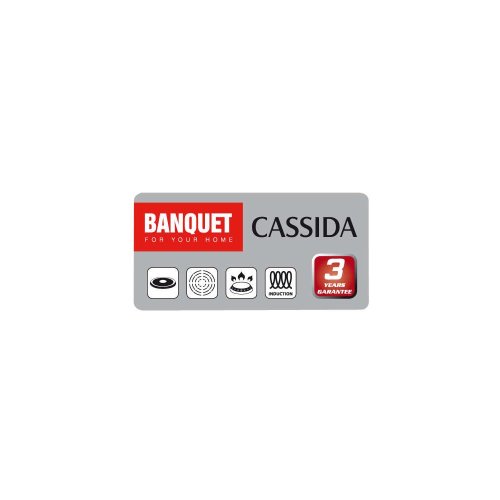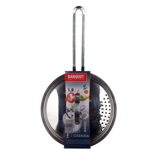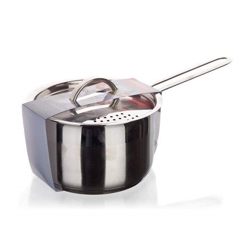 Nerezová rajnica CASSIDA New Line 1,9 ls pokrievkou, rozmery - priemer 16 cm, výška 9,5 cm, povrchová úprava v kombinácii lesk a mat, na vnútornej strane mierka objemu, dierovaná nerezová pokrievka pre ľahké zlievanie tekutín, protektor pre indukciu. Sendwichové dno.
