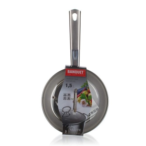 Nerezová rajnica MATTE New Line 1,5 l so sklenenou pokrievkou, rozmery rajnice - priemer 16 cm, výška 8 cm. Rajnicu je možné používať na všetky typy varných dosiek vrátane indukcie. Sendwichové dno.