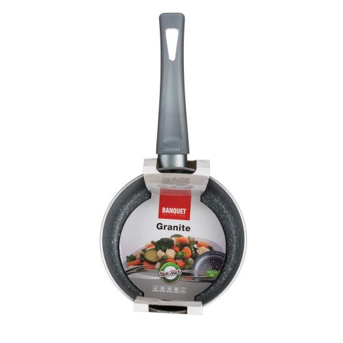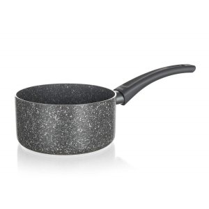 Hliníková presovaná rajnica GRANITE 16 x 8 cm s nepriľnavým 2vrstvovým povrchom v granitovom dekore, šedou bakelitovou rukoväťou so soft-touch povrchovou úpravou, bez pokrievky, s plne indukčným dnom.
