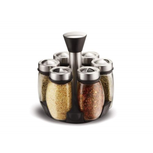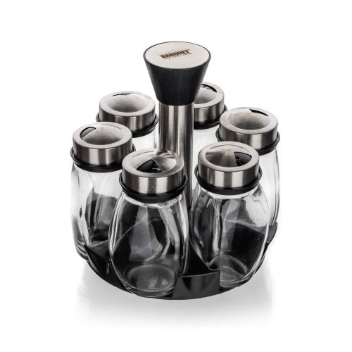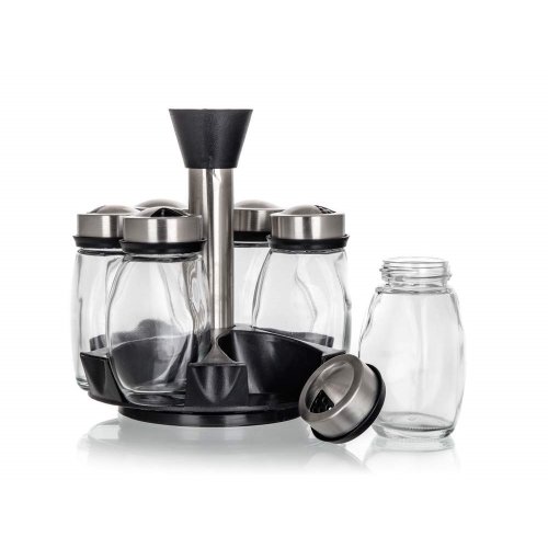 Sada koreničiek BARRIL sa skladá z: 1 x plastový ABS otočný stojan, 6 x sklenené koreničky so silikónovým tesnením a plastovým viečkom s objemom 120 ml. Koreničky majú všestranné využitie a to na základe viečka, ktoré je opatrené 3 rôznymi otvormi - jemný, hrubý, univerzálny. Koreničky sú vhodné na jemne mleté, ale aj hrubšie druhy korenia a rovnako tak sú ideálne pre korenie typu klinčekov a celé korenie. Do umývačky je možné dať iba sklenená časť koreničiek.