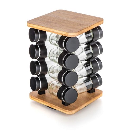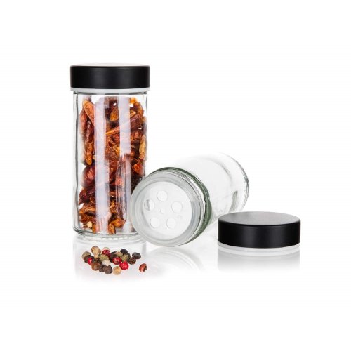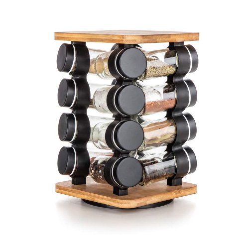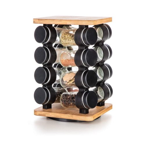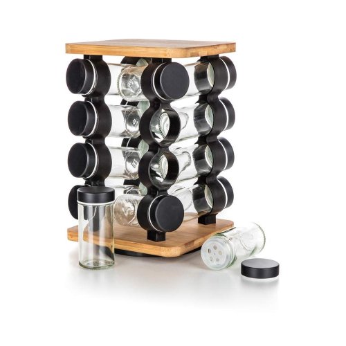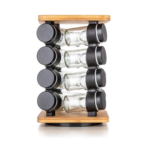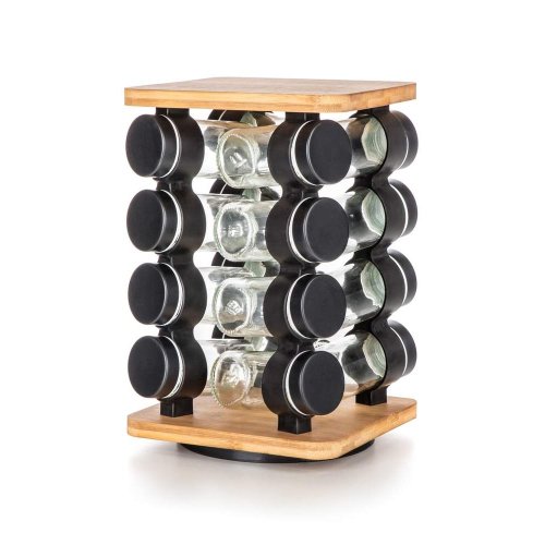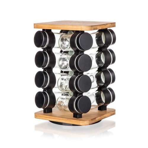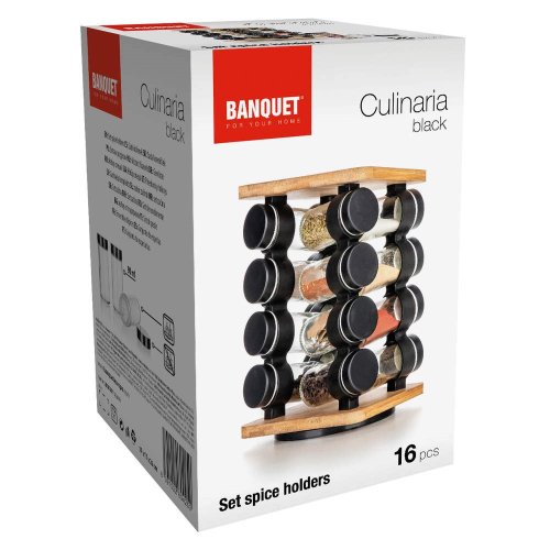 Sada koreničiek CULINARIA Black obsahuje 16 sklenených koreničiek s plastovým viečkom. Praktický otočný stojan je vyrobený z nerezovej ocele a bambusového dreva. Koreničky sú vhodné do umývačky riadu (bez viečka). Rozmery jednej koreničky: 4,4 x 9,5 cm s viečkom. Objem jednej koreničky: 90 ml. Rozmery stojana: 17 x 26 cm.