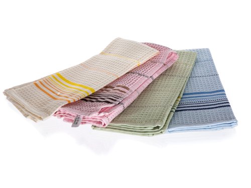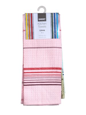 4dielna sada vaflových utierok LINNA zo 100% bavlny s votkanou viacfarebnou bordúrou. Rozmery sú 40 x 60 cm, mix farieb.
