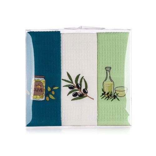 3dielna sada vaflových utierok s výšívkou OLIVES je nepostrádateľným pomocníkom pre najrôznejšie využitie v kuchyni. Utierky sú vyrobené zo 100% bavlny, sú vysoko savé. Rozmer utierok: 45 x 70 cm.