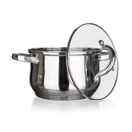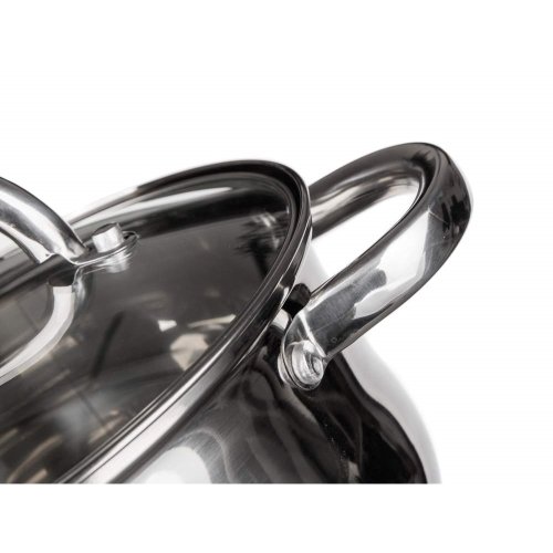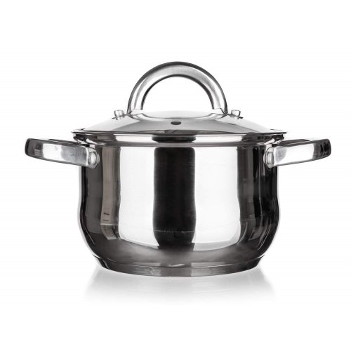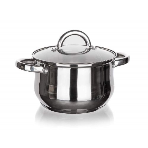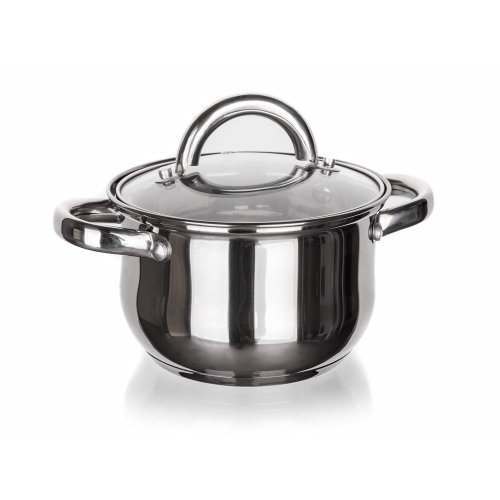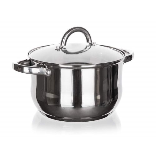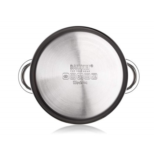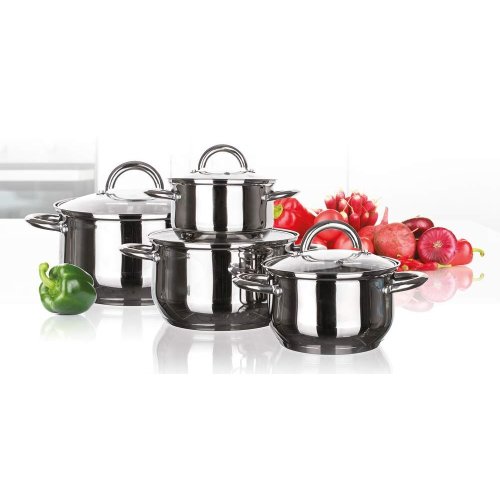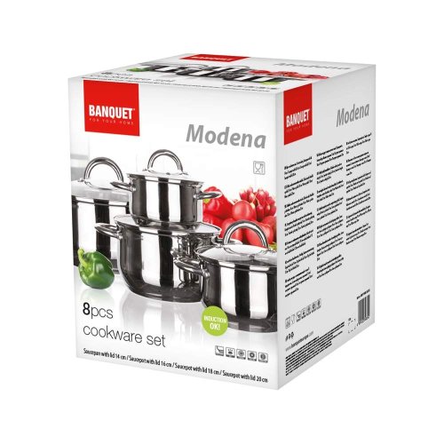 8dielna sada nerezového riadu MODENA, sada obsahuje: hrniec s pokrievkou 14 x 9,5 cm, hrniec s pokrievkou 16 x 10,5 cm, hrniec s pokrievkou 18 x 11,5 cm, hrniec s pokrievkou 20 x 12,5 cm. Povrchová úprava hrncov - lesk (vnútri aj zvonku), na vnútornej strane mierky objemu, sklenené pokrievky. Držadlá a knoby sú nerezové, držadlá sú prichytené skrutkami. Hrnce je možné používať na všetky typy varných dosiek vrátane indukcie.