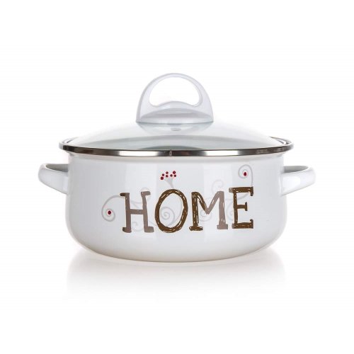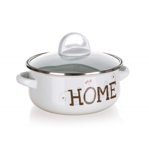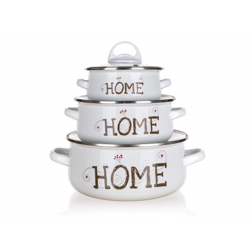 6dielna sada smaltovaných hrncov v bielej farbe s dekorom HOME so sklenenými pokrievkami, vhodné na varenie rôznych pokrmov. Sada obsahuje hrnce s rozmermi: 14 x 7 cm, 18 x 8,5 cm a 22 x 10,7 cm. Sklenená pokrievka je opatrená plastovým knobom pre jednoduchšiu manipuláciu, dna hrncov sú opatrené potlačou zodpovedajúcich piktogramov. Môžete umývať v umývačke riadu. V ponuke máme ďalšie produkty z kolekcie HOME.