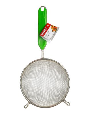 priemer: 16 cm materiál: pocínovaný kov, držadlo s plastovou vložkou ABS hustota mriežky: 1 x 1 mm počet očiek: 15 na cm2