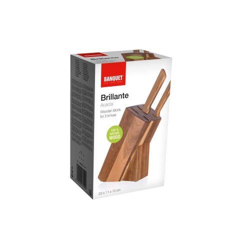 Drevený blok na 5 nožov a nožnice Acacia Brillante o rozmere 23 x 11 x 10 cm nájde praktické využitie vo Vašej kuchyni. Blok je vyrobený z akáciového dreva a je opatrený protišmykovými nôžkami.
