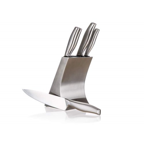Stojan pre 5 nožov METALLIC je ideálnym riešením na uskladnenie vašich nožov, je vhodný najmä pre nože rady METALLIC. Stojan chráni nože pred poškodením ostria a zároveň chráni Vás od poranenia pri neorganizovanom uskladnení v kuchyni.