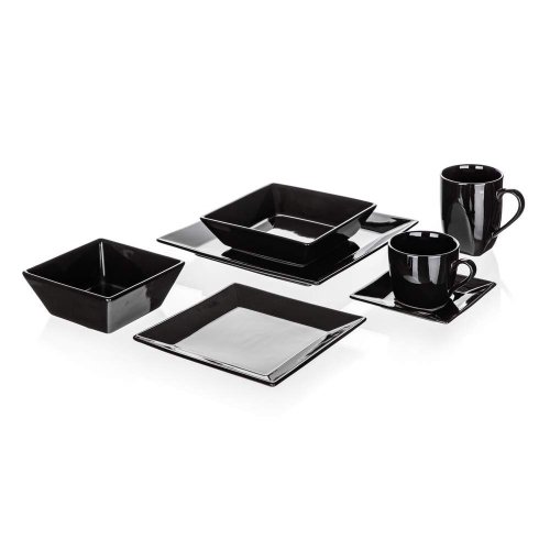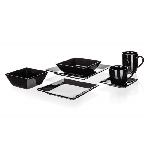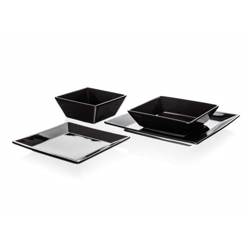 Tanier plytký MITO 25 x 25 cm v čiernej farbe je vhodný na podávanie rôznych pokrmov. Možnosť doplniť o hrnček, misku alebo šálku s tanierikom v rovnakom dekore. Tanier je možné používať v mikrovlnnej rúre a umývať v umývačke riadu.