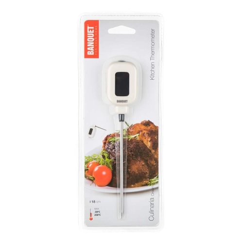 Teplomer kuchynský digitálny CULINARIA je veľmi praktický pomocník do kuchyne. Celková dĺžka výrobku je 18 cm. Napájanie batérií 1 x CR2032 (batéria nie je súčasťou položky). Kuchynský digitálny teplomer má dlhú nerezovú sondu so čidlom, ktorá sa dá jednoducho zasunúť do akéhokoľvek jedla a zistiť tak aktuálnu teplotu. Teplotné rozpätie: -30 až 250 st. C.