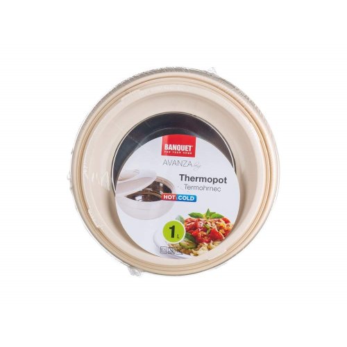 Termohrniec s pokrievkou AVANZA 1 l béžový, je praktický na uchovávanie teplých pokrmov. Ocenia ho hlavne kuchári a kuchárky pri uskladnení hotových pokrmov pred samotným servírovaním m. Termohrniec sa vyrába v niekoľkých veľkostiach. Vnútro hrnca tvorí nerezová vložka, výplň medzi stenami je z PUR peny na zachovanie vynikajúcej izolácie pri skladovaní či prenášaní potravín.