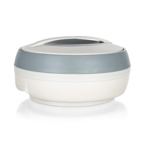 Termohrniec s pokrievkou COSMOS 2,5 l vo farbe ivory-šedá, je praktický na uchovávanie teplých pokrmov. Ocenia ho hlavne kuchári a kuchárky pri uskladnení hotových pokrmov pred samotným servírovaním. Termohrniec sa vyrába v niekoľkých veľkostiach. Vnútro hrnca tvorí nerezová vložka, výplň medzi stenami je z PUR peny na zachovanie vynikajúcej izolácie pri skladovaní či prenášaní potravín.