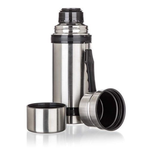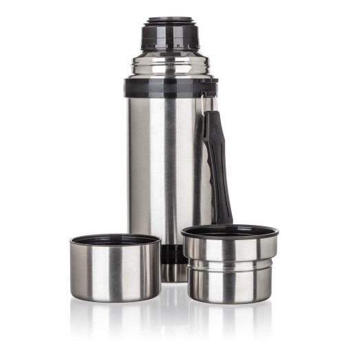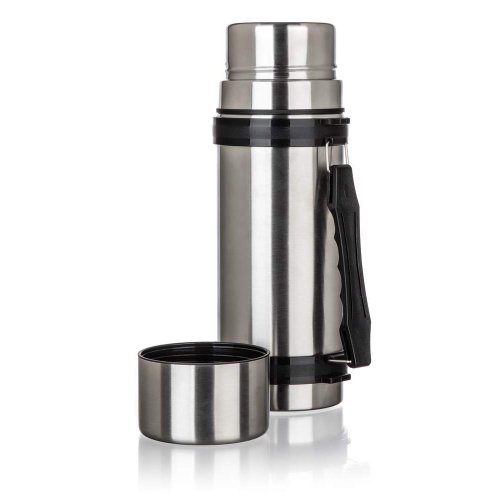 Nerezová cestovná termoska AKCENT s objemom 1 l, má dvojplášťové prevedenie, vonkajší aj vnútorný povrch je vyrobený z nerezu. Má plastový uzáver a viečko termosky slúži ako pohárik na pitie. Súčasťou termosky je praktické plastové držadlo. Nerezové termosky sú veľmi odolné a bezpečné, nehrozí rozbitie vložky či obarenia pri manipulácii. Teplotný pokles je závislý na teplote nápoja pri plnení, množstve nápoja a teplote okolia.