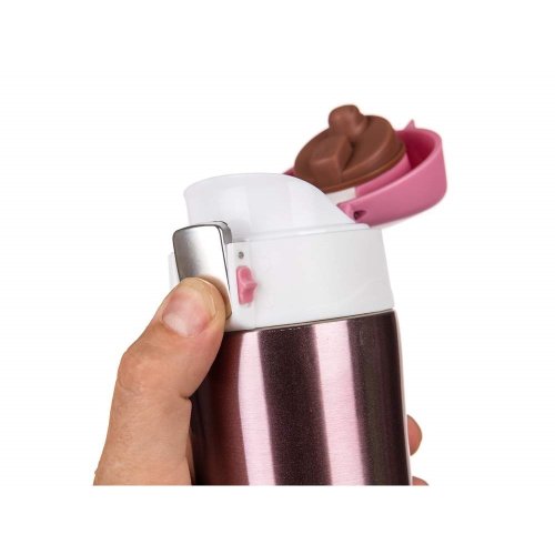 Cestovná termoska BODO s objemom 430 ml má vonkajší aj vnútorný povrch z nerezu a plastové vyklápacie viečko. Vďaka dvojstennému prevedeniu si udrží nápoj dlhšie svoju teplotu. Viečko sa otvára stlačením poistky, pri ktorej je zámok zabraňujúci nechcenému otvoreniu termosky.