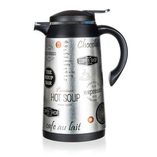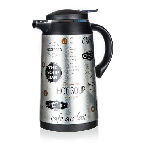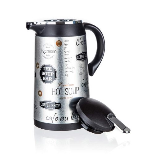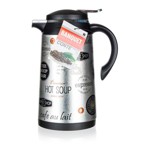 Termokanvica CONTE s potlačou 1 l, má sklenenú termoizolačnú vložku a vonkajšia časť je vyrobená z kovu a plastu. Termokanvica je vhodná pre teplé aj studené nápoje. Rozmery: výška 26 cm, priemer 13 cm, využiteľný objem 1 l. Materiál: povrch plast PP / kov / pochrómovaný ABS plast, silikónové tesnenie, vnútorná časť sklenená.