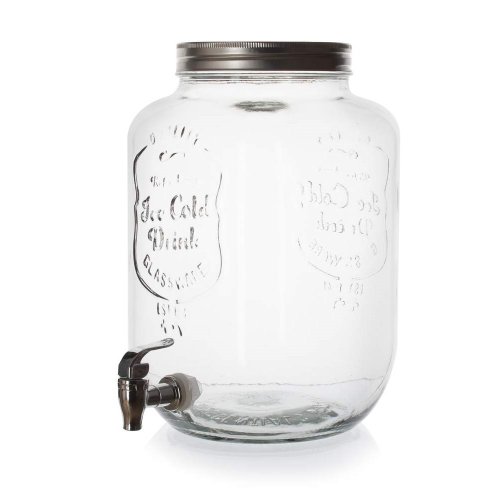 Sklenený zásobník na nápoje WALT s objemom 8 l slúži na servírovanie osviežujúcich nápojov na oslavách a letných párty. Zásobník je vyrobený z kvalitného číreho skla a je vybavený praktickým plastovým kohútikom na dávkovanie nápojov. Zásobník je určený na podávanie iba chladných a sviežich letných nápojov typu domáca limonáda, ovocný džús, ľadový čaj a podobne. Široké hrdlo umožňuje do nádoby pohodlne vkladať ľad alebo kúsky ovocia. Hĺbka výrobku je vrátane ventilu. V balení 2 kusy tesnení.