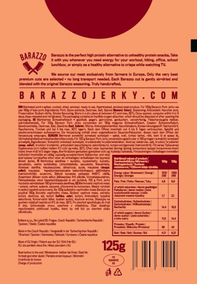 Objavte jedinečný zážitok delikátneho sušeného bravčového mäsa Barazzo! Ručne vyberané prvotriedne kúsky bravčového mäsa, majstrovsky ochutené originálnou zmesou korenia Barazzo, ponúka nielen vysoký obsah bielkovín, ale aj neuveriteľnú krehkosť, ktorá prekonáva tradičné sušené hovädzie. Nechajte sa uniesť jedinečnou chuťou a jemnosťou každého kúska, starostlivo vysušeného na vzduchu pre dokonalý zážitok.