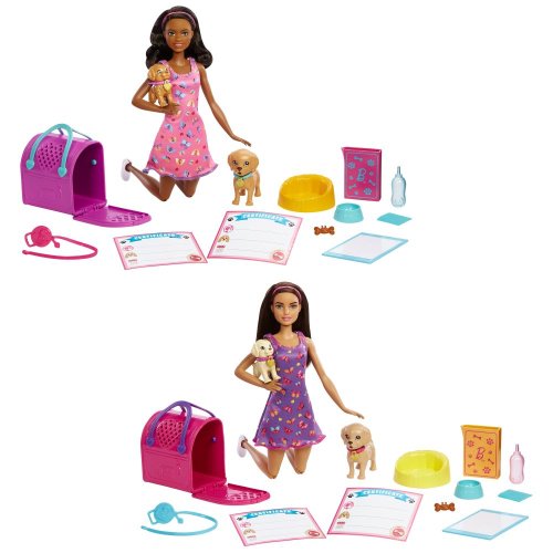 Herný set Barbie™ Bábika so psíkmi podnecuje detskú lásku k zvieratkám a opatrovateľské inštinkty. Tento herný set obsahuje bábiku Barbie® a roztomilé šteniatka na adopciu s funkciou premeny farby - deti môžu dať veľkému šteniatku napiť ľadovú vodu z fľaše a sledovať, ako ciká na podložku pre šteňatá, alebo môžu "kŕmiť" malé šteniatko a sledovať, ako sa mu mení farba. Medzi ďalšie rozprávačské doplnky, ktoré podporujú opatrovateľskú hru, patrí prenosná taška pre domácich miláčikov, pelech, adopčné certifikáty a ďalšie! Bábika nevie samostatne štát. Farby a vzhľad výrobku sa môžu líšiť.