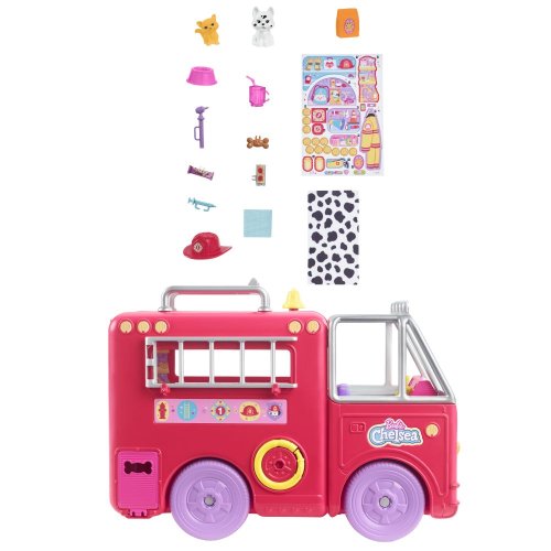 Deti môžu pomôcť bábike Chelsea™ zachrániť deň s jej vlastným hasičským autom. Keď bábika Chelsea™ a jej šteniatko dorazia na miesto zásahu, môžu deti otvoriť hasičské auto a odhaliť poschodovú posteľ, záchranársky rebrík, skladaciu hasičskú hadicu, umývadlo, stanicu prvej pomoci a ďalšie. Bábika Chelsea™ má na sebe rozkošnú hasičskú uniformu s odnímateľnou sukňou, helmou a topánkami. List so samolepkami umožňuje deťom prispôsobiť tento herný set ich predstavám. Bábika Chelsea™ a viac ako 15 doplnkov umožňujú rozprávať toľko možných príbehov, koľko si detská fantázia dokáže predstaviť.