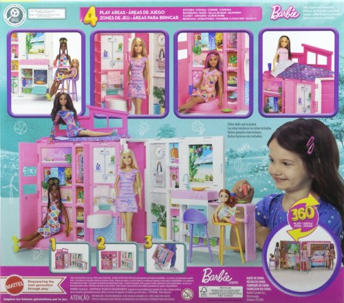Tento roztomilý a farebný domček pre bábiky Barbie® je vyrobený z plastov na ekologickej báze a je skladací na pohodlné uloženie. Súčasťou herného setu je bábika Barbie®, ktorá podporuje rozprávanie príbehov, a tiež 4 herné plochy vrátane kuchyne, kúpeľne, spálne v podkroví a filmového kútika. Nábytok a doplnky rozširujú možnosti hrania, zatiaľ čo dizajnové detaily ako „solárne panely“ podporujú ekologické správanie! Bábika nevie samostatne štát. Farby a vzhľad výrobku sa môžu líšiť.