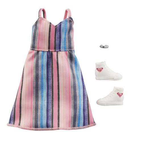 Bábika Barbie® rada oblieka najnovšie módne trendy. A niektoré zo svojich obľúbených vplyvov zachytila v tejto skvelej kolekcii oblečenia pre bábiky. Každý kompletný vzhľad – jeden outfit a dva doplnky – zahŕňa rozpoznateľné ikony obľúbených značiek. Kombinujte s ostatným oblečením z tohto radu a vytvárajte tak rôzne vzhľady a objavujte nové štýly. Deti ich môžu zozbierať všetky a rozšíriť tak možnosti hrania a štýlov. Každá sada oblečenia pre bábiku Barbie® obsahuje jeden oblečok a doplnky. Bábika sa predáva samostatne. Univerzálny strih určený pre väčšinu bábik Barbie®. Každý módny balíček sa predáva samostatne, podľa aktuálnej ponuky. Farby a vzhľad výrobku sa môžu líšiť.
