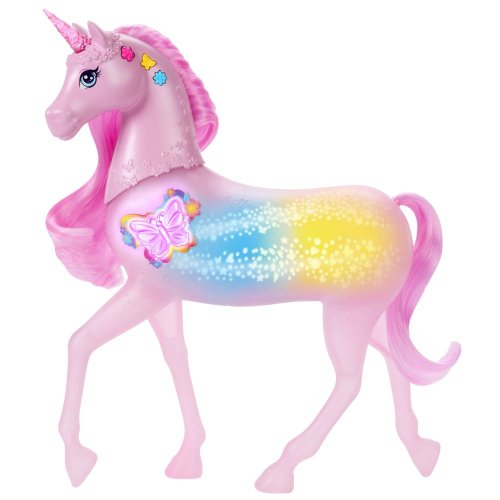 Blysnite sa s Barbie kúzelným jednorožcom! Deti môžu rozsvietiť 20 rôznych svetelných a zvukových kombinácií s veľkým množstvom spôsobov hry. Pohlaďte hlavu jednorožca a spustite kúzelnú show plnú svetiel, zvukov a hudby. Stlačte jedno, dve alebo všetky tri tlačidlá na jednorožci a užite si úchvatnú prehliadku svetiel, zvukov a hudby. Farby tlačidiel zodpovedajú ružovým, žltým a modrým svetielkom, takže si deti môžu prispôsobiť farebné kombinácie a vytvoriť si vlastnú jedinečnú svetelnú jednorožčiu show. Farby a vzhľad výrobku sa môžu líšiť.